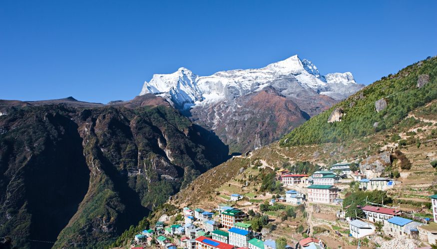 - Scenic approach via Lukla Airport and Namche Bazaar.